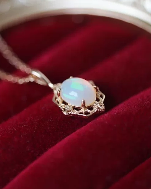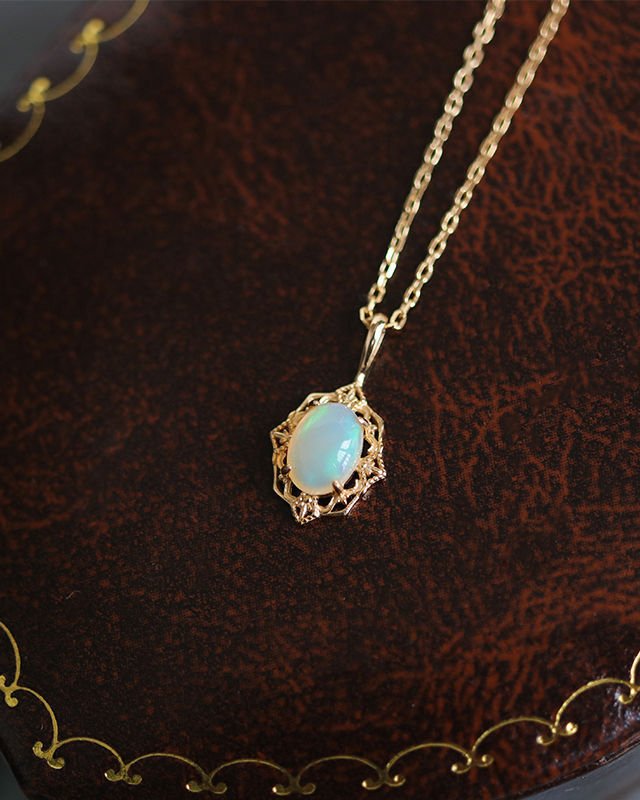 Gilded Lace Egg Surface Opal Pendant Necklace – Victorian Court Style