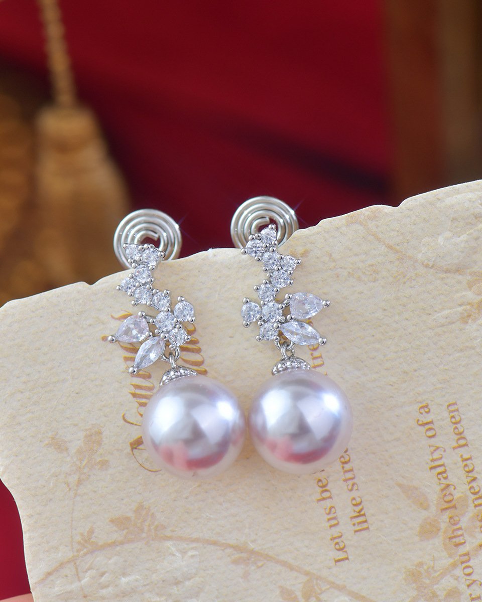 • Material: White Gold Plated Brass, Zircon, Pearl, Brass Pin