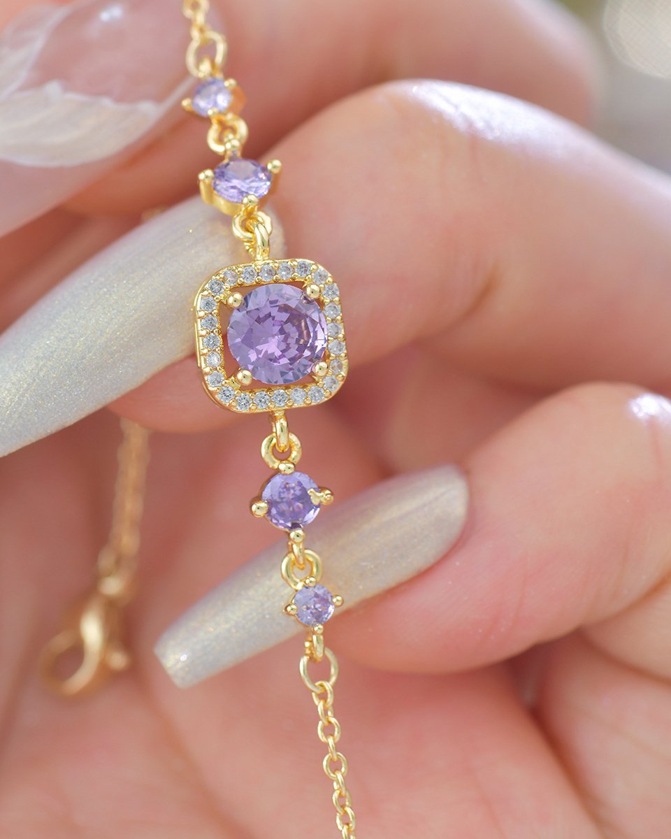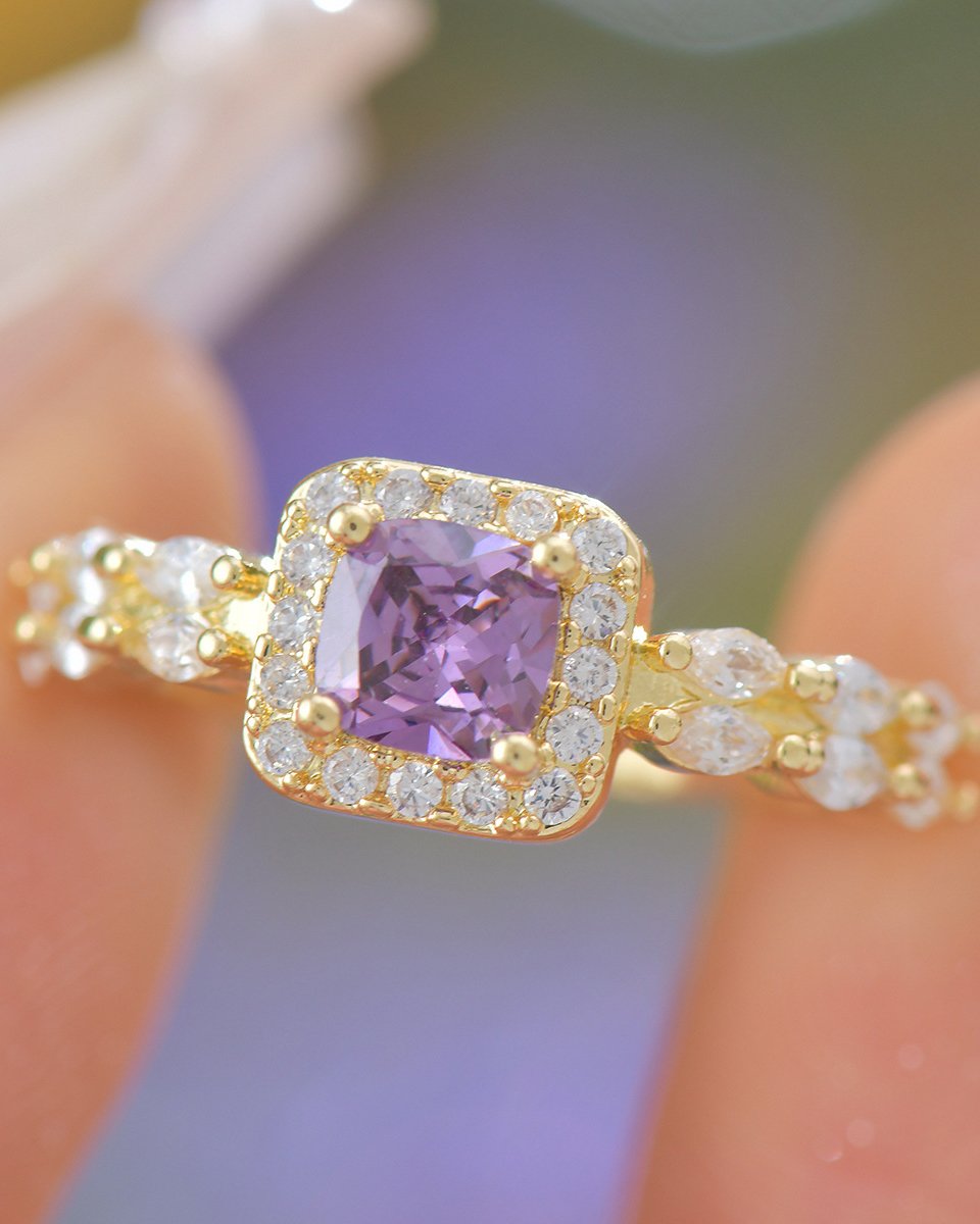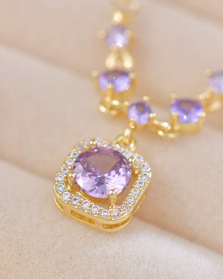 Royal Purple Princess Cut Full Zircon Set