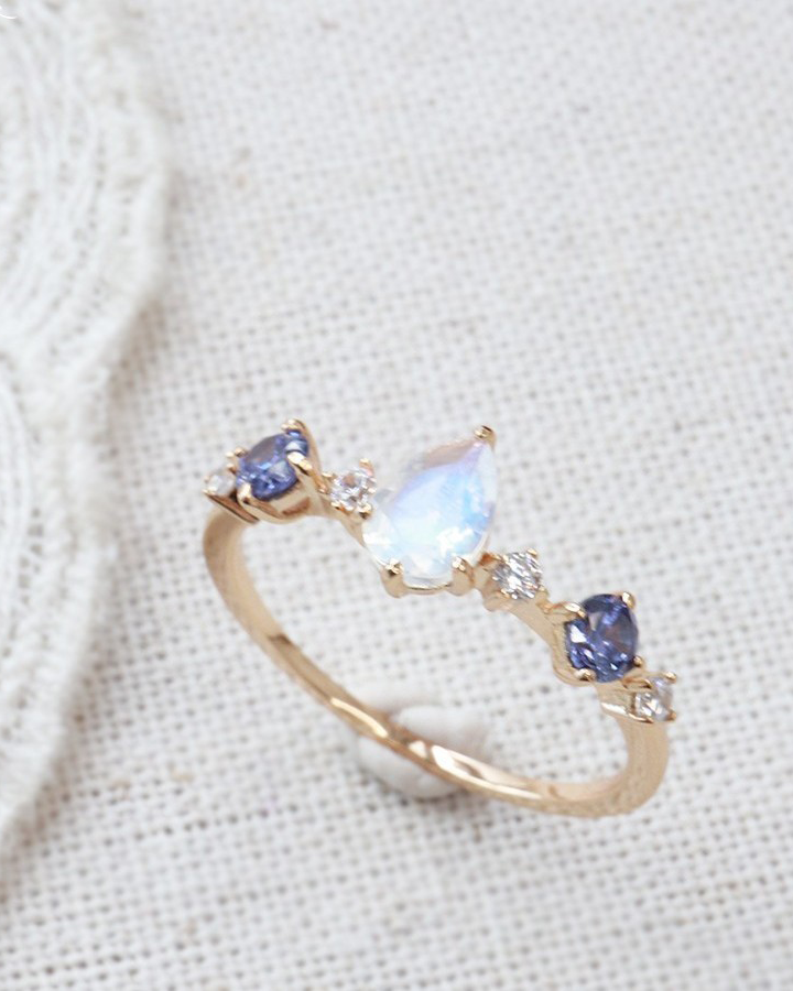 Teardrop Moonstone & Zircon Ring – Light Luxury