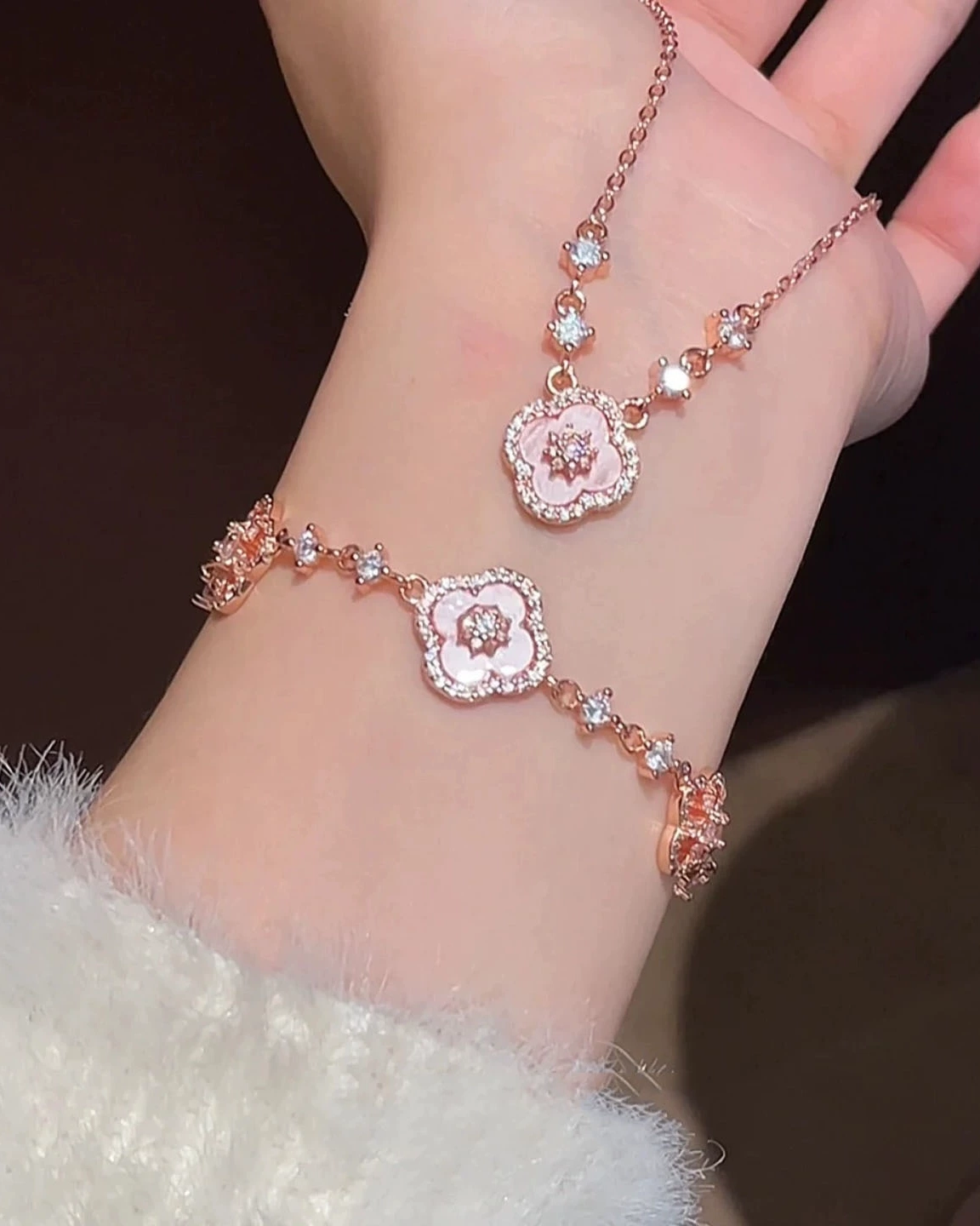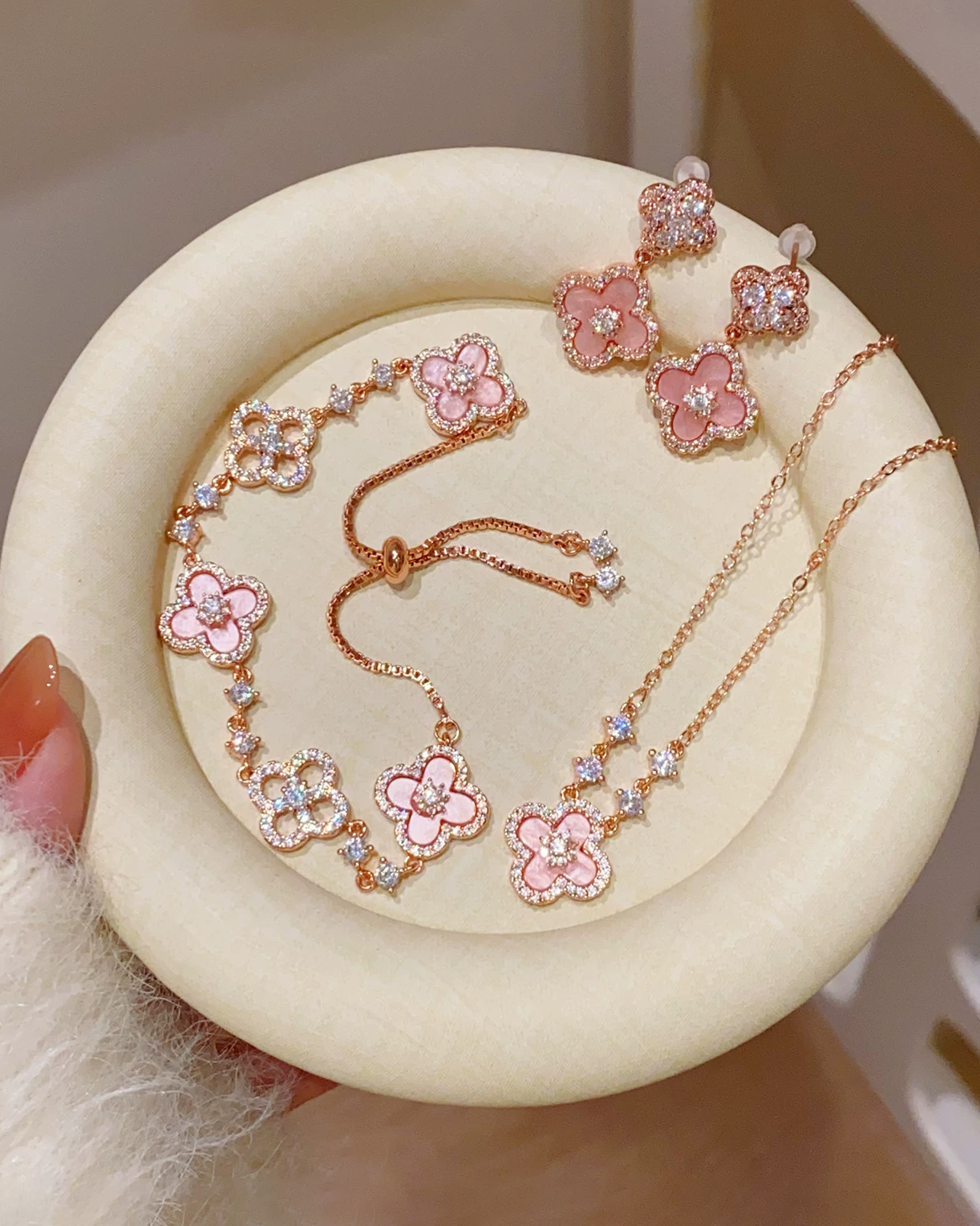The Pink Blossom: Sparkling Floral Necklace, Bracelet & Earrings Set